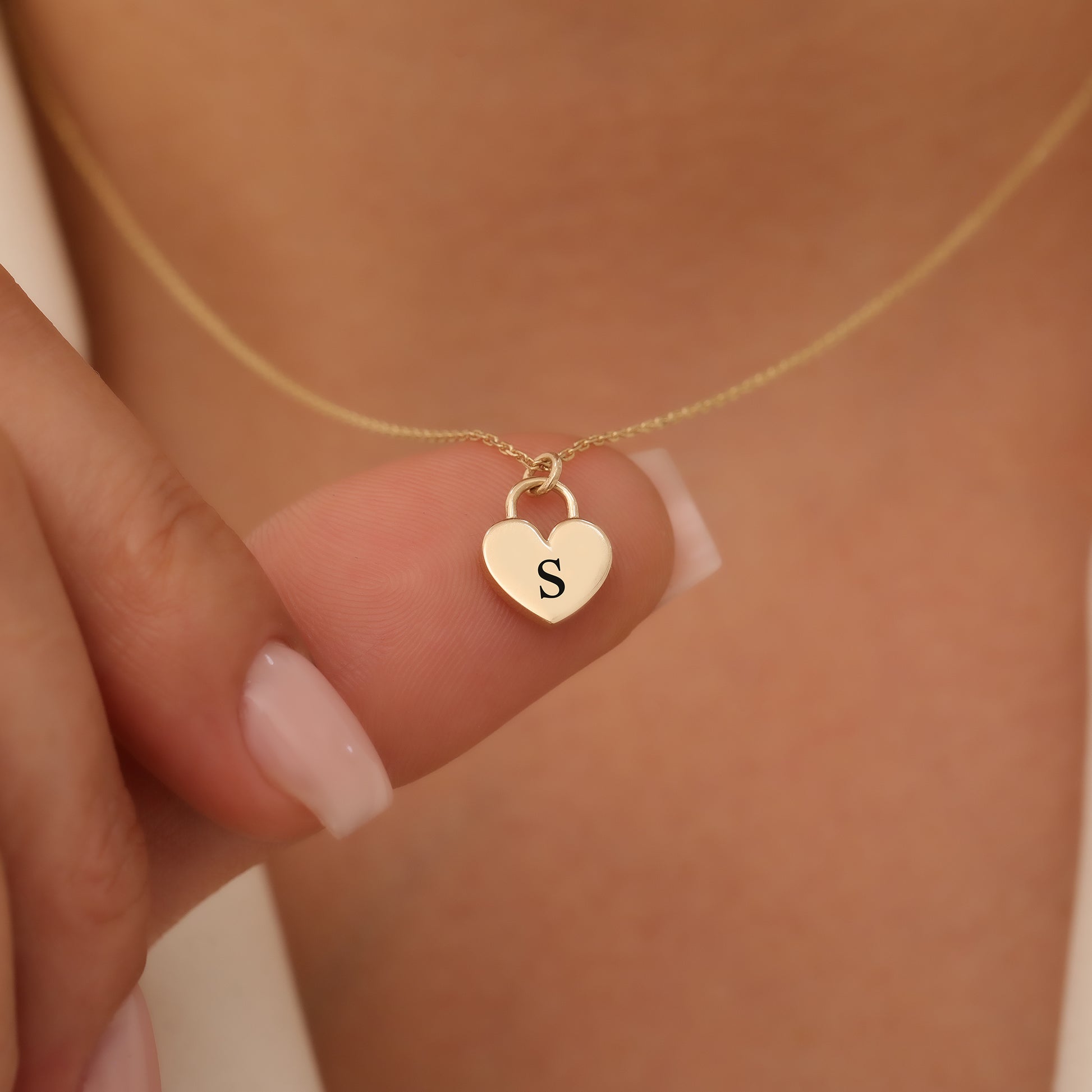 "14K Gold Personalized Heart Necklace with Custom Initial - Minimalist Jewelry"