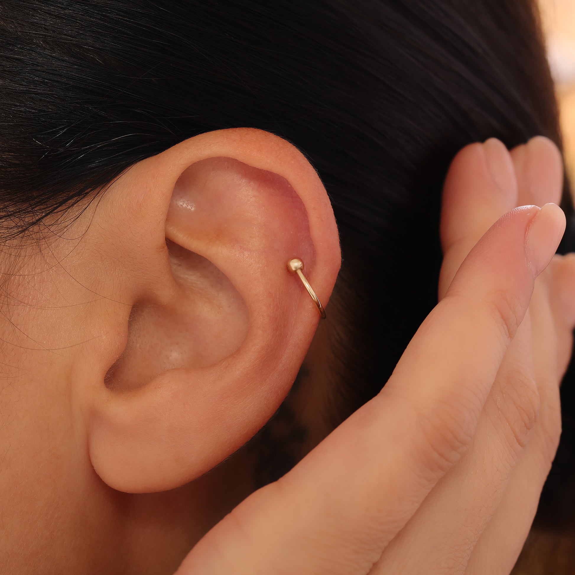 Unlike lightweight alternatives, this ring is crafted with a solid gold weight that makes it sturdier, resistant to bending or warping, and perfect for long-term wear. The ball end closure ensures a secure fit while maintainig a refined, minimalist look.